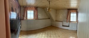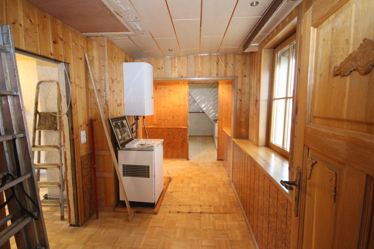 Da der ehemalige Eigentümer im Holz bearbeiteten Gewerbe tätig war, versteht man, dass so gut wie alle Räume mit Paneelen und Wandverkleidungen ausgestattet sind.